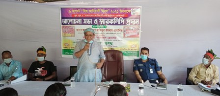 দিনাজপুরের পার্বতীপুরে আন্তর্জাতিক আদিবাসী দিবস পালিত হয়েছে। এ দিবস উপলক্ষে আজ সোমবার সীমিত পরিসরে স্বাস্থ্যবিধি মেনে পার্বতীপুর ইয়ংস্টার ক্লাব চত্তরে এক আলোচনা সভা অনুষ্ঠিত হয়। আন্তজার্তিক আদিবাসী দিবস উপলক্ষ্যে বেলা ১২টায় অনুষ্ঠিত এ আলোচনা সভায় সভাপতিত্ব করেন আদিবাসী সমাজ উন্নয়ন সমিতির চেয়ারম্যান বিমল মুরমু।