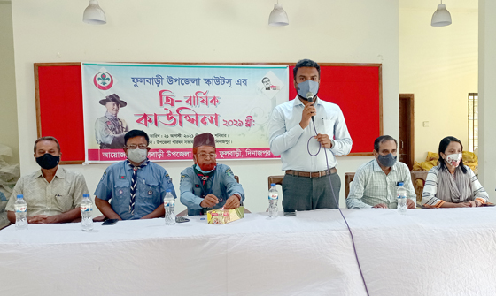 ফুলবাড়ী উপজেলা শাখা স্কাউটসের উদ্যোগে আয়োজিত সম্মেলনের সভাপতিত্ব করেন উপজেলা শাখা স্কাউটসের সভাপতি ও উপজেলা নির্বাহী কর্মকর্তা (ইউএনও) মো. রিয়াজ উদ্দিন। ফুলবাড়ী বাংলা সরকারি প্রাথমিক বিদ্যালয়ের প্রধান শিক্ষক মোছা. শরিফা আক্তার লাকীর সঞ্চালনায় আয়োজিত সম্মেলনে স্বাগত বক্তব্য রাখেন ফুলবাড়ী বাংলা সরকারি প্রাথমিক বিদ্যালয়ের প্রধান শিক্ষক মোছা. শরিফা আক্তার লাকীর সঞ্চালনায় অয়োজিত সম্মেলনে বক্তব্য রাখেন জেলা স্কাউটসের সম্পাদক সহকারী লিডার ট্রেনার আতিকুজ্জামান মিলন, কমিশনার মাতলুবুল মামুন, লিডার ট্রেনার প্রতিনিধি মশিহুর রহমান চৌধুরী, উপজেলা স্কাউটসের সহসভাপতি ও উপজেলা মাধ্যমিক শিক্ষা কর্মকর্তা শমশের আলী মন্ডল, মাধ্যমিক শিক্ষা কর্মকর্তা মোসাম্মৎ হাসিনা ভূঁইয়া, সুজাপুর সরকারি মডেল উচ্চ বিদ্যালয়ের প্রধান শিক্ষক সঞ্জয় কুমার চক্রবর্তী, জিএম পাইলট উচ্চ বিদ্যালয়ের প্রধান শিক্ষক মোজাম্মেল হক প্রমুখ।