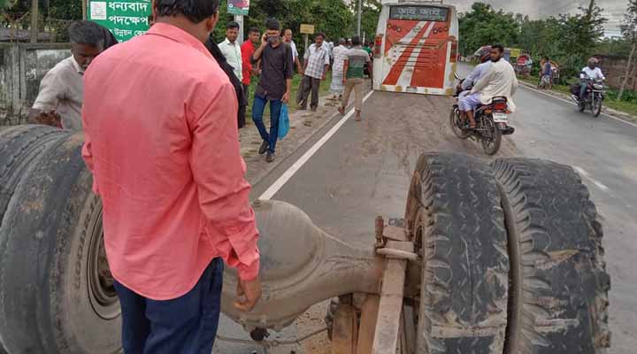 বাসটি সৈয়দপুর কেন্দ্রীয় বাস টার্মিনাল থেকে রংপুরের উদ্দেশ্যে রওনা হলে কামারপুকুর মৎস্য গবেষনা কেন্দ্রের সামনে ওই বাসের পিছনের জোড়া লাগানো ৪টি চাকা খুলে যায় এবং বাসটি রাস্তায় বসে যায়। তবে এতে কোন হতাহত বা প্রাণহানি হয়নি।