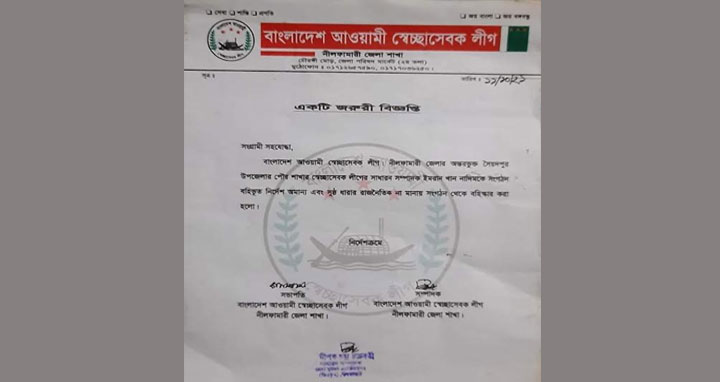 এ ঘটনার পর পরেই সংবাদটি বিভিন্ন অনলাইন পত্রিকা ও সামাজিক যোগাযোগে ভাইরাল হলে তা দৃষ্টিগোচর হয় জেলা ও স্থানীয় নেতাদের। এরই প্রেক্ষিতে সংগঠনটির জেলা শাখার সভাপতি ও সাধারন সম্পাদক গতকাল স্বাক্ষরিত এক পত্রে তাঁর বহিস্কারের বিষয়টি নিশ্চিত করেন।
