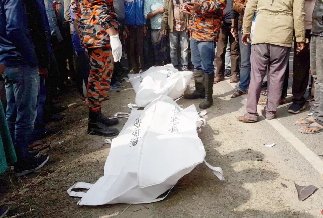 ট্রাকচাপায় মোটরসাইকেল আরোহী ৩ বন্ধুর মৃত্যু