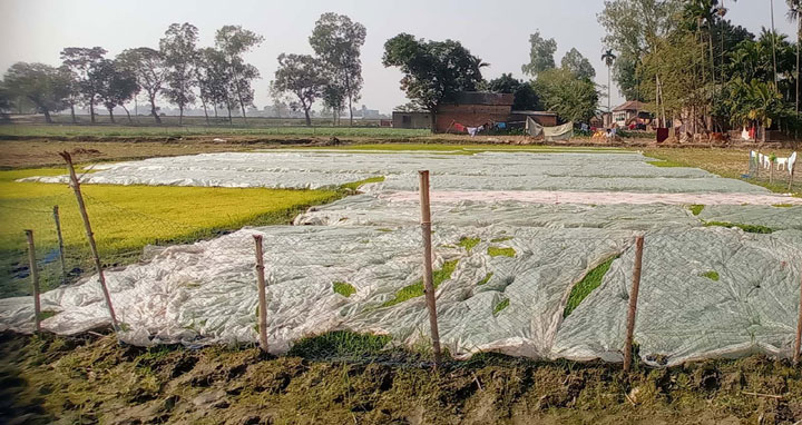 চিকলী নিউজ : নীলফামারী সৈয়দপুরে দ্বিতীয় দফায় শৈত্যপ্রবাহ ও ঘন কুয়াশায় হুমকির মুখে পড়েছে প্রায় ৫০ ভাগ বোরো বীজতলা। হলুদ বা বিবর্ণ রং ধারণ করে প্রায় মরে যাচ্ছে চাড়া। নষ্ট বীজতলা নিয়ে দিশেহারা সৈয়দপুরের কৃষককুল। অপরদিকে শীতথেকে বীজতলা রক্ষার্থে সন্ধ্যার আগেই পলেথিন দিয়ে ঢেঁকে দেয়া হচ্ছে বীজতলা আর সূর্যের আলো দেখা দিতে তা তুলে নেয়া হচ্ছে। এমন অবস্থা বিরাজ করছে এ উপজেলায়।সৈয়দপুর উপজেলা কৃষি অফিস জানায়, এবারে বোরো মৌসুমে এ উপজেলায় ৪শ ২২ হেক্টর জমিতে বীজ বপন করা হয়েছে।