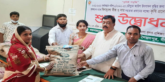 সৈয়দপুর উপজেলার পাঁচটি কামারপুকুর, কাশিরাম বেলপুকুর, বাঙ্গালীপুর, বোতলাগাড়ী ও খাতামধূপুর ইউনিয়ন ও পৌরসভা এলাকার ১২০ জন কৃষক কৃষাণীর মধ্যে ধান বীজ ও সার বিতরণ করা হবে।