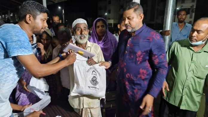 চিকলী নিউজ : মানুষ মানুষের জন্য, এ প্রবাদ বাক্য আবারও সত্য প্রমাণিত করলেন সৈয়দপুর উপজেলা আওয়ামী যুবলীগের যুগ্ম আহবায়ক বিশিষ্ট ব্যবসায়ী ও সমাজসেবক মোস্তফা ফিরোজ। আজ শুক্রবার রাতে শহরের কুন্দলস্থ তাঁর কার্যালয়ে পৌর এলাকার ১৫ টি ওয়ার্ডের এক হাজার অসহায় পরিবারের মাঝে ওইসব ঈদ উপহার বিতরণ করেন তিনি। এসব ঈদ উপহারের মধ্যে ছিল শাড়ি, লুঙ্গী, লাচ্ছা, সেমাই, চিনি ও গুড়োদুধ। এছাড়া একই সময় সম্প্রতি সৈয়দপুর শহরের জুম্মাপাড়ায় সংঘটিত অগ্নিকান্ডে ক্ষতিগ্রস্ত পরিবারগুলোর মাঝে ১০ কেজি করে চাল তুলে দেয়া হয়। বিতরণ অনুষ্ঠানে এসময় অন্যদের মধ্যে উপস্থিত ছিলেন সৈয়দপুর পৌরসভার প্যানেল মেয়র-৩ সাবিয়া সুলতানা,ব্যবসায়ী আনোয়ার হোসেন আন্নু,পৌর ছাত্রলীগের সাবেক সভাপতি মো. মোশাররফ হোসেন, উপজেলা ছাত্রলীগের সাবেক সহ সভাপতি রুবেল বসুনিয়া সহ বিভিন্ন ওয়ার্ডের ছাত্রলীগ নেতৃবৃন্দ। জানতে চাইলে মোস্তফা ফিরোজ বলেন,ঈদে অসহায় ও দুস্থ মানুষের মুখে হাসি ফোটাতেই আমার এই ক্ষুদ্র প্রচেস্টা। এরই অংশ হিসেবে আমার পৌর এলাকার অসহায় মানুষের পাশে থাকার চেষ্ঠা করছি। ্আগামীতেও এ ধারা অব্যাহত থাকবে জানিয়ে তিনি সকলের দোয়া কামনা করেন।