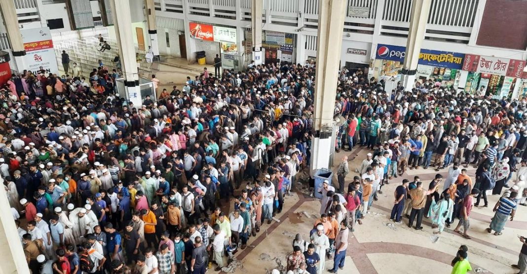 কমলাপুর রেলওয়ে স্টেশনের স্টেশন ম্যানেজার মাসুদ সারওয়ার বলেন, ঈদ যাত্রায় ট্রেনের অগ্রিম টিকিট সবাই পাবে না। টিকিটের চেয়ে টিকিট প্রত্যাশীর সংখ্যা অনেক বেশি। অনলাইনে টিকিট আছে ১৩ হাজার কিন্তু দেখা যায় এক সঙ্গে সাড়ে ৪ লাখ মানুষ হিট করছে টিকিটের জন্য।