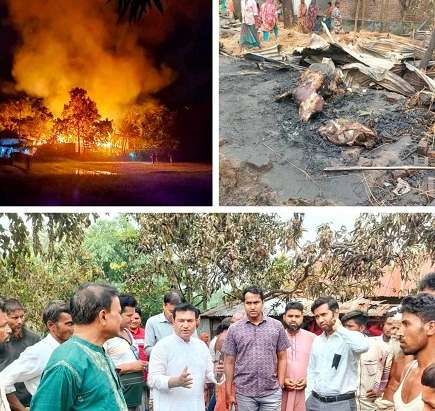 খানসামা প্রতিনিধি : দিনাজপুরের খানসামায় আগুনে ৭ পরিবারের ১০টি ঘর ও  ৫ টি গরু, ৩ টি ছাগল, মুরগিসহ চাল, পাট, রসুন, কাপড়-চোপড়, আসবাবপত্র পুড়েছে।