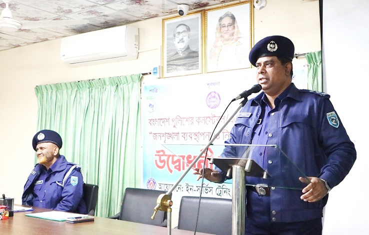বাংলাদেশ পুলিশের এএসআই(নিঃ) ও কনস্টেবলদের ৬ দিন মেয়াদী ‘জনশৃঙ্খলা ব্যবস্থাপনা ও নিরাপত্তা কোর্সের আনুষ্ঠানিক উদ্বোধন করেন অনুষ্ঠানের প্রধান অতিথি ইন-সার্ভিস ট্রেনিং সেন্টারের কমান্ড্যান্ট (পুলিশ সুপার) মোঃ আবদুল্লাহ্-আল-ফারুক।