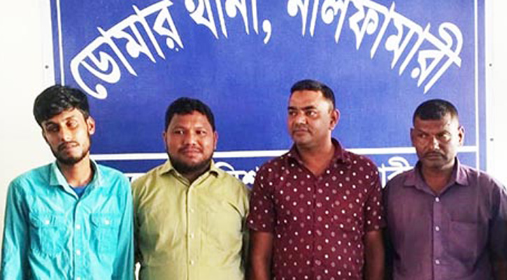 গ্রেপ্তাররা হলেন, ডোমার উপজেলার হরিণচড়া ইউনিয়নের বাবুডাঙ্গা এলাকার নিধিকৃষ্ণ বর্মনের ছেলে নিরঞ্জন রায় (৩৭), একই ইউনিয়নের শেওঢগাড়ী চকিদার পাড়ার মৃত হাবিবুর রহমানের ছেলে মনিরুজ্জামান বাদল (৪২), সদর ইউনিয়নের বক্করের মোড় নূর ইসলামের ছেলে সবুজ ইসলাম (২৪) ও একই এলাকার মৃত সামছুল ইসলামের ছেলে নজরুল ইসলাম (৪৫)।
