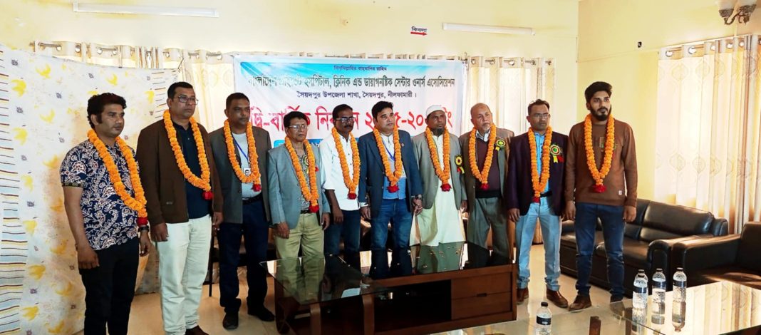চিকলী নিউজ : নীলফামারীর সৈয়দপুরে বাংলাদেশ প্রাইভেট হসপিটাল, ক্লিনিক এন্ড ডায়াগণস্টিক সেন্টার ওনার্স এ্যাসোসিয়েশন সৈয়দপুর উপজেলা শাখার দ্বি-বার্ষিক নির্বাচন (২০২৫-২৬) গত মঙ্গলবার (১৮ ফেব্রুয়ারি) শহরের পার্বতীপুর সড়কের সড়ক ও জনপথ বিভাগের রেস্টহাউজে অনুষ্ঠিত হয়েছে।