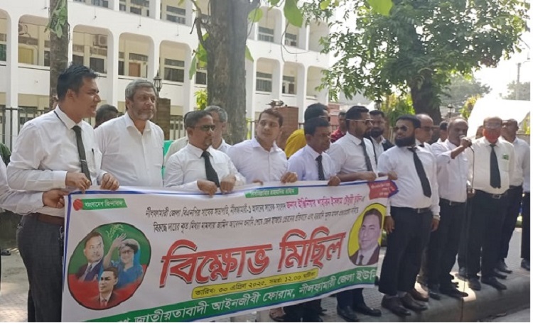 জাতীয়তাবাদী আইনজীবী ফোরামের সভাপতি এ্যাডভোকেট আবু মোহাম্মদ সোয়েমের সভাপতিত্বে সমাবেশ পরিচালনা করেন সাধারণ সম্পাদক এ্যাডভোকেট আসাদুজ্জামান খান রিনো।
