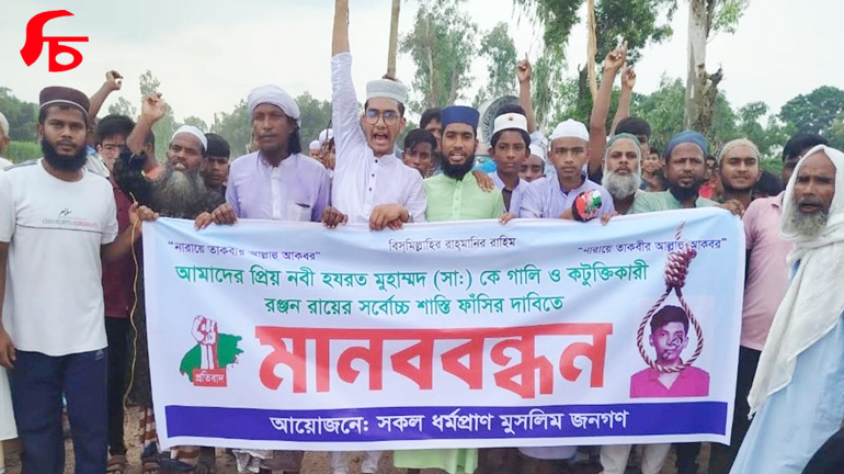 চিকলী নিউজ : মহানবী হযরত মুহাম্মদ (সাঃ) কে কটুক্তিকারী রঞ্জন রায়ের সর্বোচ্চ ফাঁসির দাবীতে বিক্ষোভ মিছিল ও মানববন্ধন কিশোরগঞ্জে হয়েছে।