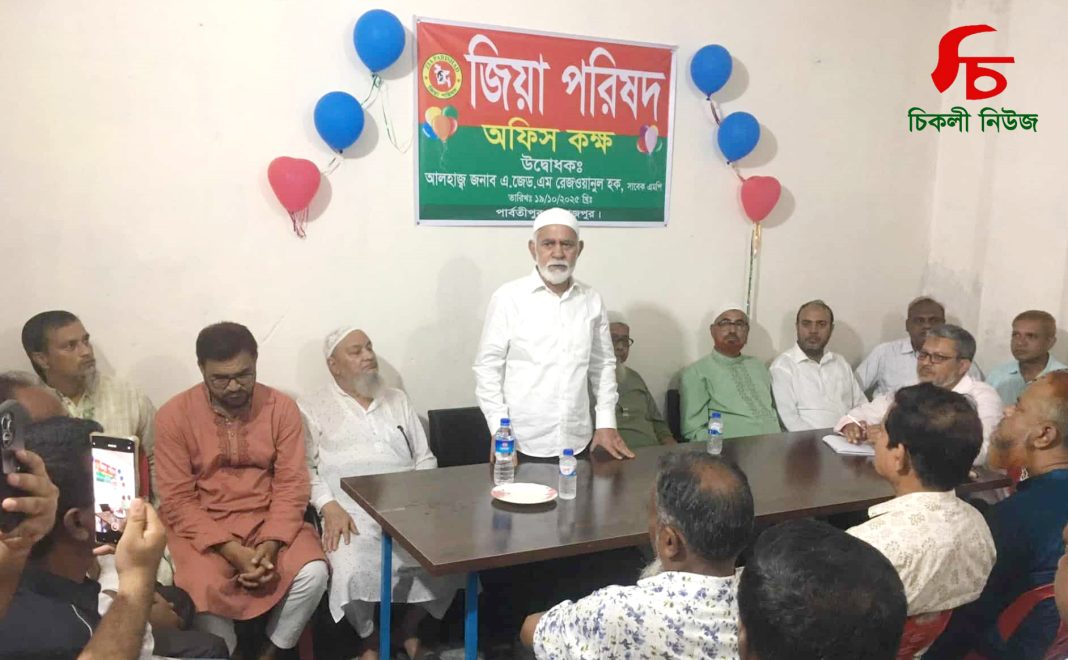 রবিবার (১৯ অক্টোবর) বিকেল সাড়ে ৪ টায় ঢাকা মোড় বাস মালিক সমিতির নীচ তলায় জিয়া পরিষদের অফিসটি উদ্বোধন করা হয়। উক্ত অনুষ্ঠানে সভাপতিত্ব করেন পার্বতীপুর জিয়া পরিষদের উপজেলা শাখা’র সভাপতি সাবেক অধ্যাপক আলহাজ্ব ফয়জুর রহমান। বিশেষ অতিথি হিসেবে উপস্থিত ছিলেন, উপজেলা বিএনপি’র সিনিয়র সহ-সভাপতি এ,জেড,এম মেনহাজুল হক, সাধারণ সম্পাদক অধ্যাপক জালাল উদ্দীন আহমেদ, সাংগঠনিক সম্পাদক মোখলেছুর রহমান, যুগ্ম সাধারন সম্পাদক আকরাম হোসেন (মাস্টার), কোষাধ্যক্ষ জাহাঙ্গীর হোসেন, পৌর বিএনপি’র সভাপতি আতিয়ার রহমান, উপজেলা যুব দলের আহবায়ক আতিকুর রহমান স্বপন, পৌর যুবদলের আহবায়ক রবিউল ইসলাম বাবু সহ বিএনপি’র অঙ্গ সহযোগী সংগঠনের নেতৃবৃন্দ।
