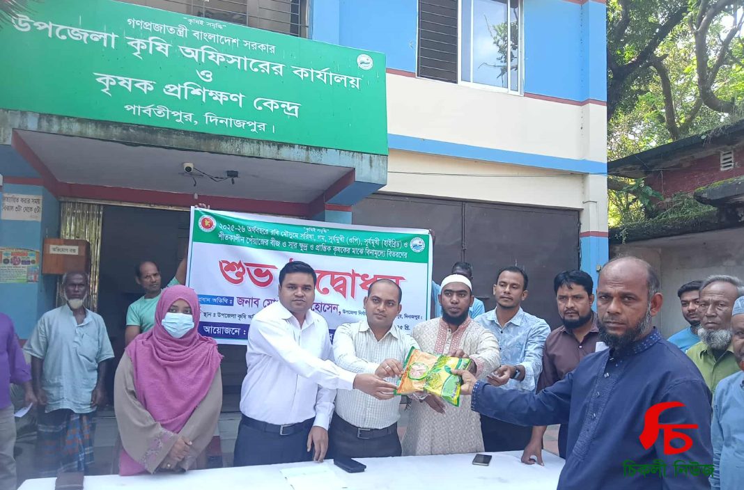 ২০২৪-২৫ অর্থ বছরে রবি মৌসুমের কৃষি প্রণোদনা কর্মসূচির আওতায় সরিষা, গম, সূর্যমূখী ও শীতকালীন পেয়াঁজ বিনামূল্যে বিতরণ করা হয় এ অনুষ্ঠানে। এর আওতায় ১৮১০ জন প্রান্তিক কৃষক রবি মৌসুমে কৃষি প্রণোদনার এই সুফল পাবেন। এর মধ্যে ১৫০০ জন কৃষককে ১ কেজি করে সরিষা, ২৫০ জন কৃষককে ২০ কেজি করে গম, ১০ জন কৃষককে ১ কেজি সূর্যমুখী ওপি, ৩০ জন কৃষককে ১ কেজি করে সূর্যমুখী হাইব্রিড ও ২০ জন কৃষককে ১ কেজি করে শীতকালীন পেঁয়াজ বিতরণ করা হয়। অনুরূপভাবে ১৮১০ জনের প্রত্যেক কৃষককেই ১০ কেজি ডিএপি ও এমওপি সার দেয়া হয়। এসময় আরও উপস্থিত ছিলেন, পার্বতীপুরে কর্মরত বিভিন্ন প্রিন্ট ও ইলেকট্রনিক মিডিয়ার সাংবাদিকবৃন্দ।