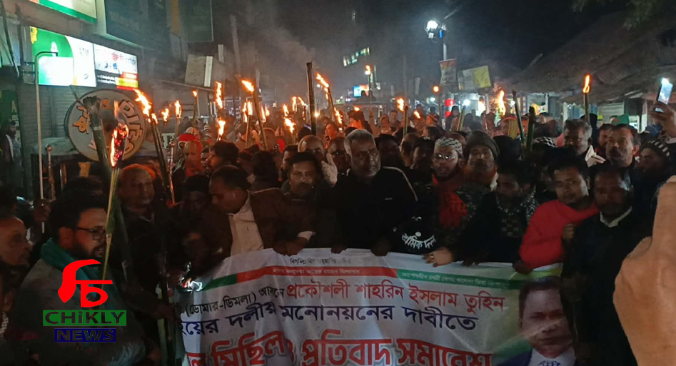 শুক্রবার (২৬শে ডিসেম্বর) সন্ধ্যায় মশাল হাতে একটি বিক্ষোভ মিছিল বের করে ডোমার শহরের বিভিন্ন প্রধান সড়ক প্রদক্ষিণ করেন সাধারণ নেতা-কর্মীরা। পরে ঐতিহাসিক বাটার মোড়ে মিছিলটি এসে প্রতিবাদ সমাবেশে মিলিত হয়।
