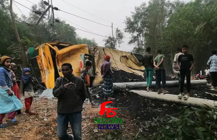 দুর্ঘটনায় ট্রাকের চালক ও হেলপার গুরুতর আহত হয়েছেন বলে স্থানীয় সূত্রে জানা গেছে।