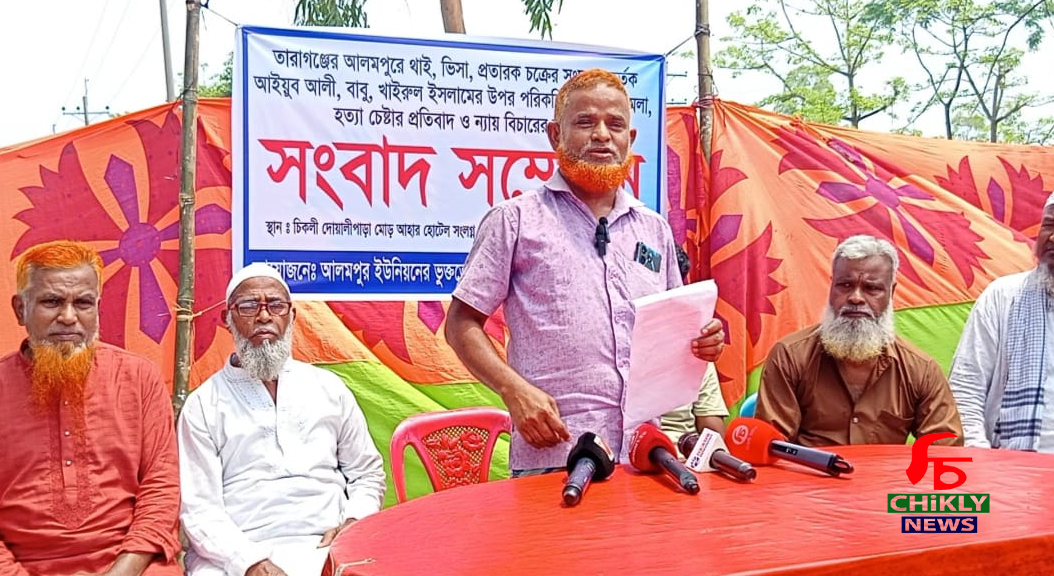 তারাগঞ্জের আলমপুরে থাই ভিসা প্রতারকের পূর্বপরিকল্পিত সংঘবদ্ধ হামলার প্রতিবাদে সংবাদ সম্মেলন